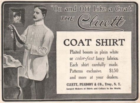 En kijk: hier is een advertentie voor zo’n overhemd, on and off like a coat, uit 1905.