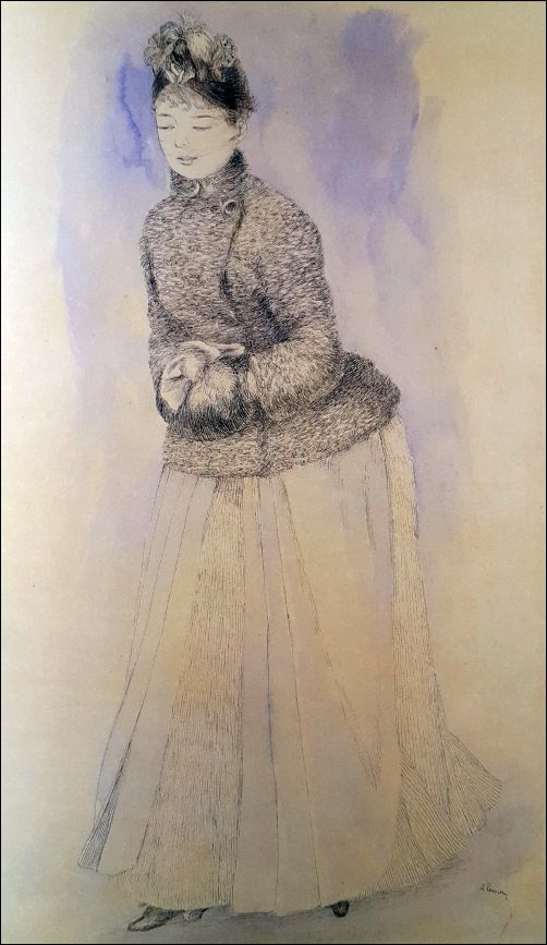 Waarom een plaatje je ineens treft, je weet het niet. Ik bleef lang kijken naar deze tekening van Pierre-Auguste Renoir (1841-1919) uit het Poesjkin-museum in Moskou; hij is dezer dagen te zien in de Fondation Custodia in Parijs. Hij betoverde mij met zijn teerheid, al die streepjes, de mof, het vagelijk Japanse in haar gezicht, haar geloken ogen.