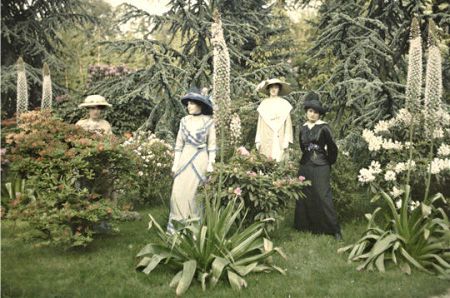Het is een meer dan wonderlijk oord. Voor wie er heen wil: http://www.albert-kahn.fr/. Hieronder een reproductie van een autochrome die omstreeks 1910 moet zijn gemaakt in Kahns tuin, zo te zien aan de rand van het blauwe bos.