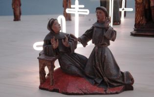 In een zaal naast de ‘vroege Hollanders’ (zie hieronder) stond een onafzienbaar grote tafel van triplex met witte kruisjes van neonbuis er op, en daar tussendoor oude houten beeldjes. Heiligen vooral. Een vreemde aanblik. Ik legde mijn metgezel, die niet zoveel persberichten krijgt als ik, uit dat zoiets tegenwoordig een ‘interventie’ heet – een kunstenaar … Lees verder