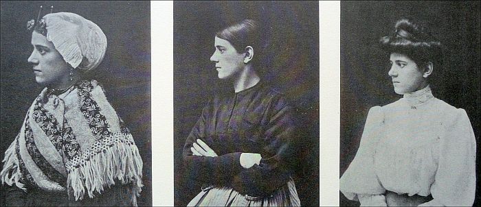 ‘Scheveningse vrouw, donker type’, noemt hij haar in het bijschrift. Eerst is ze met muts en doek afgebeeld, dan zonder, en dan ‘als dame gekapt en gekleed’. Hoe ze heette, wat ze ervan vond, we weten het niet. En wij, zien we iets bijzonders aan deze jonge vrouw die van een rare geleerde voor één keer het kapsel en de blouse van een dure mevrouw mocht dragen? Eigenlijk niet. Ze is geen schoonheid, maar ze ziet er leuk en redelijk zelfbewust uit.
